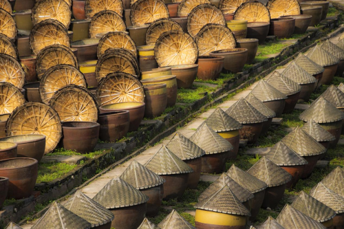 赤水河沿岸的三伏天,常年維持著恒溫與 75% 以上的濕度,這種獨(dú)特的氣候條件,恰是微生物發(fā)酵的黃金參數(shù)。45 度斜坡上的數(shù)千口陶缸,并非隨意擺放 —— 傾斜角度能讓每缸原料均勻接受日照,陶土的透氣特性則能調(diào)節(jié)缸內(nèi)濕度,形成天然的 "發(fā)酵實(shí)驗(yàn)室"。當(dāng)?shù)貙?shí)驗(yàn)室檢測(cè)數(shù)據(jù)顯示,這里的菌群經(jīng)過(guò)百年馴化,已形成穩(wěn)定的微生物群落,在三伏天的旺盛代謝中,能將黃豆蛋白分解為 18 種氨基酸,其中鮮味氨基酸占比高達(dá) 42%,這正是鮮味的核心來(lái)源。